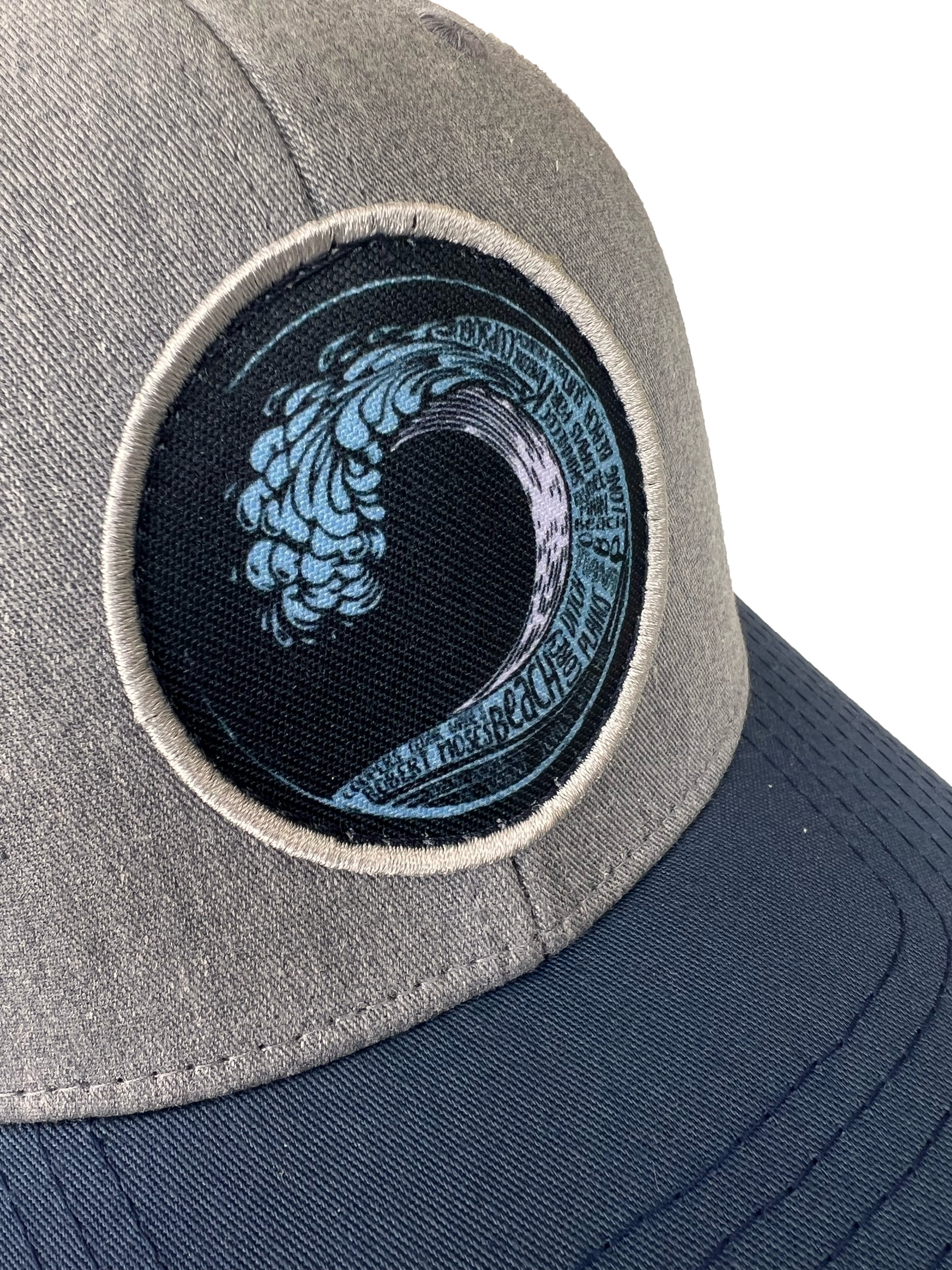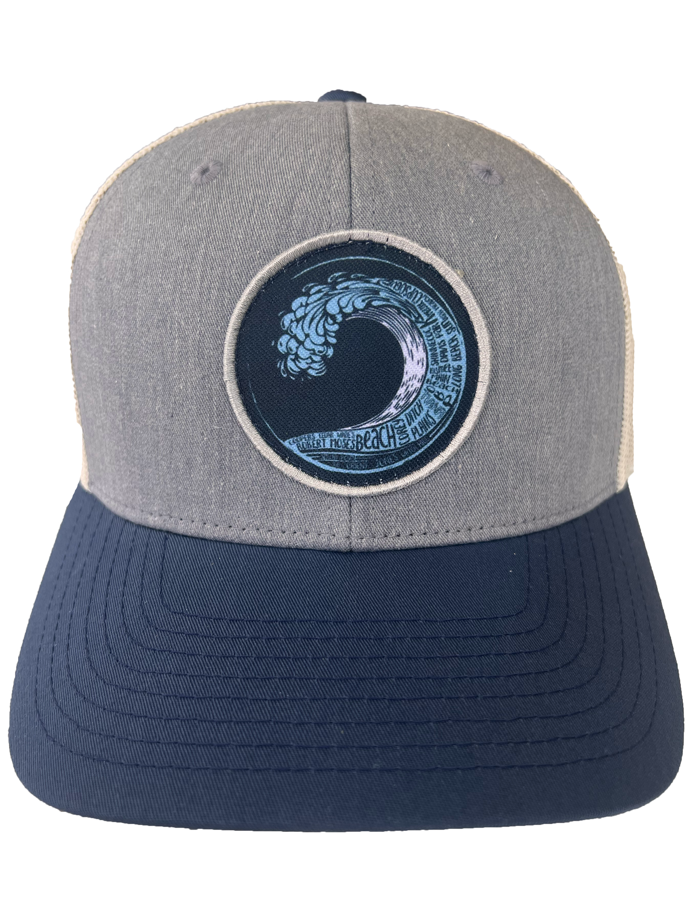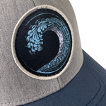 Beach Wave Mesh Curved Snapback Hat (Gray and Navy)