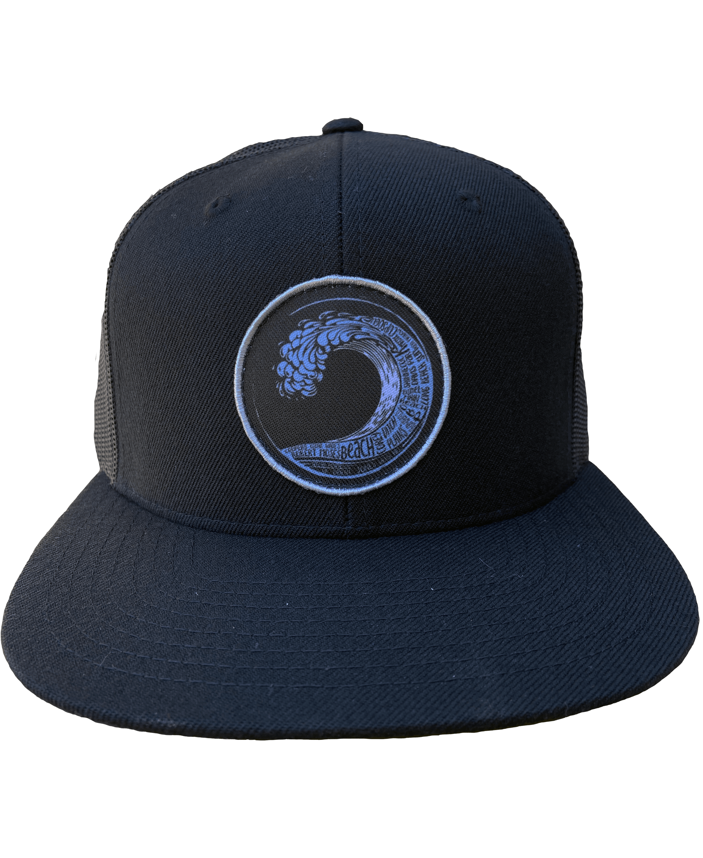Beach Wave Mesh Flat Brim Snapback Hat (Black on Black)