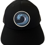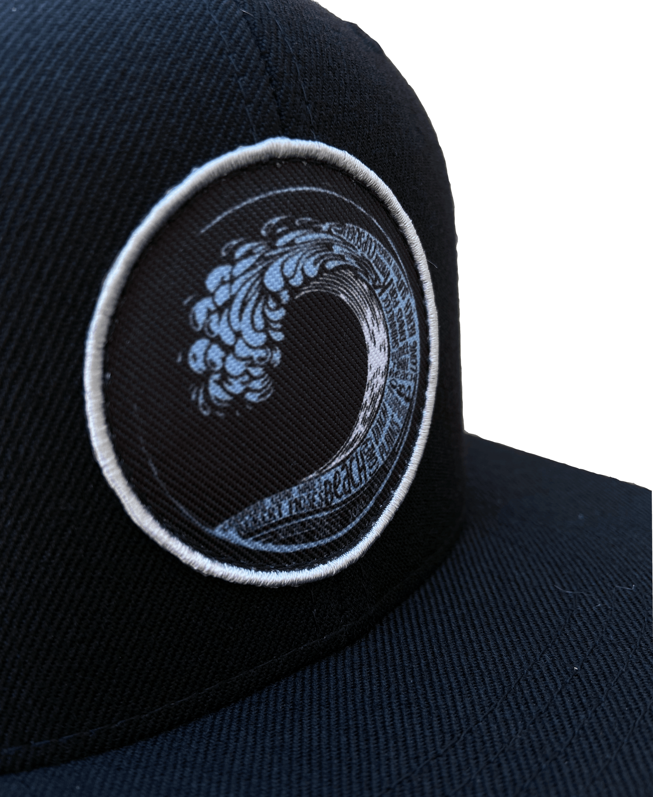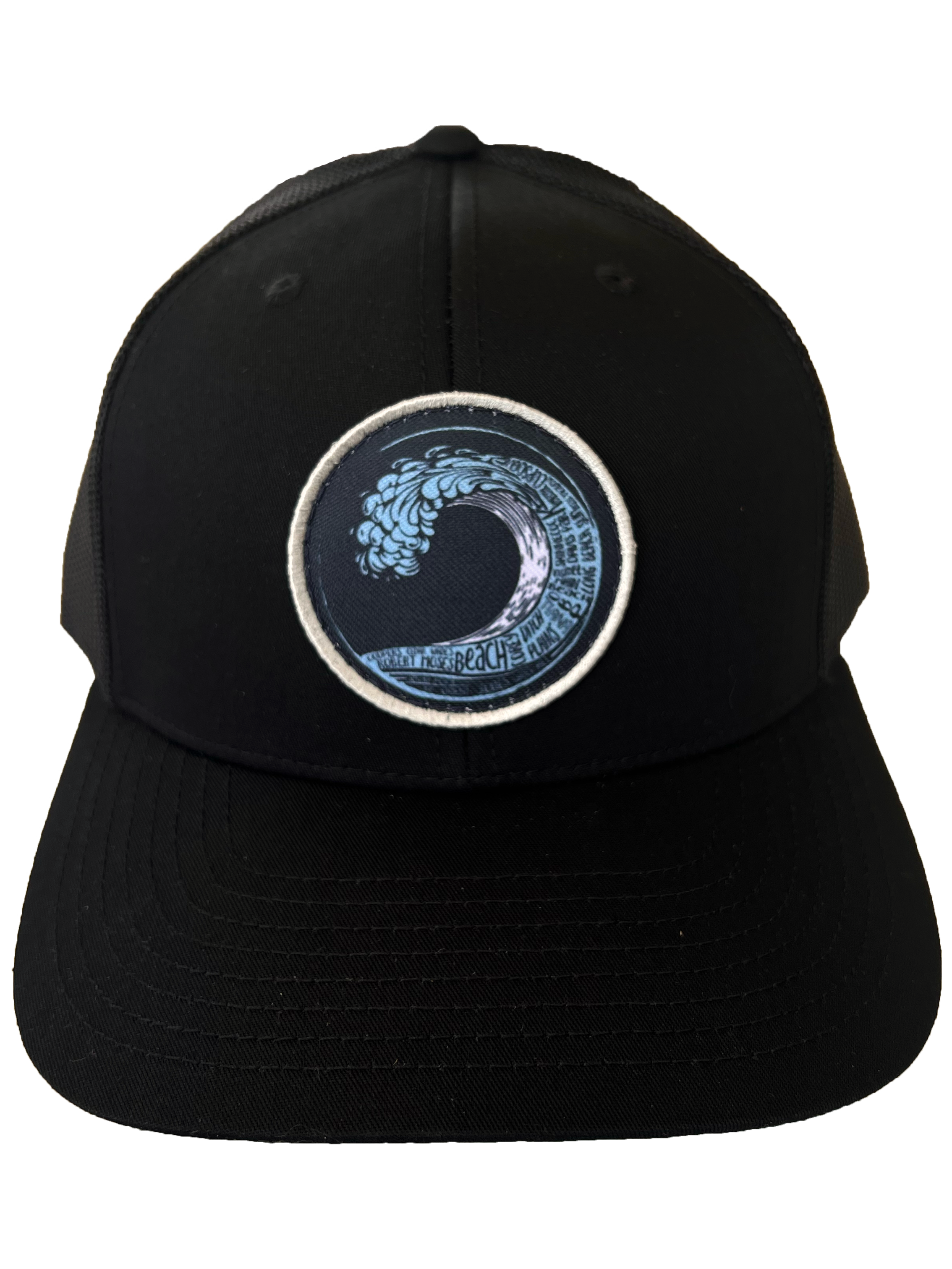 Beach Wave Mesh Curved Snapback Hat (Black on Black)